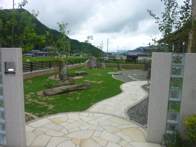HOME外構・エクステリア・お庭の施工事例トータルデザイン > ガラスブロックと御影石の門柱に雑木の庭 神崎郡神川町M様邸