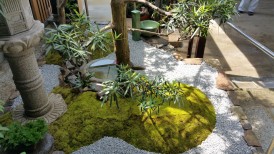 ・水鉢・灯篭を配置変えし、どの角度からも眺めれるお庭にリノベーションしました。
