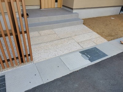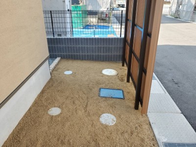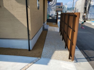 お引越し前に外構(アプローチやフェンス)は工事されており。