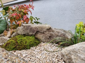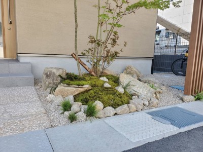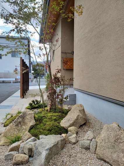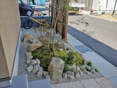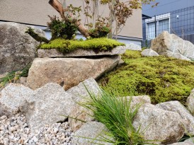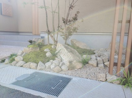 ロック外構と苔の具合は、まさに私たちが求めていた庭で