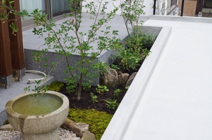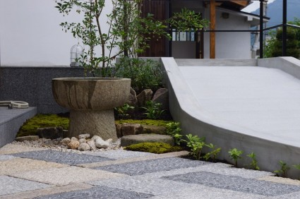玄関前の小スペースで作った和モダンな坪庭 神崎郡K様邸