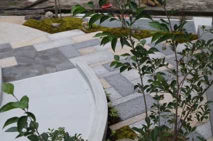モダンな石畳とよくマッチしたお庭で足元の苔がとてもきれいです。