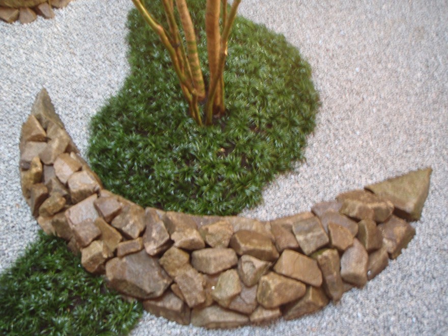三日月に使用したのは生野丹波石を三日月のラインを出し、立体的になるように高さもつけました。