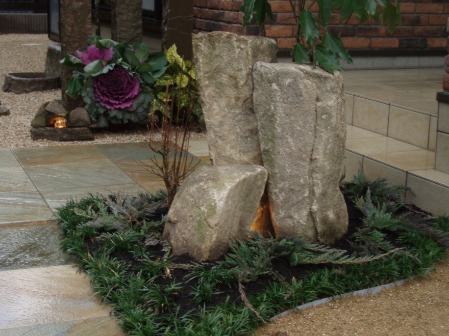 個性的に六方石を組み合わせつくば廻りをアレンジして意匠性を高めています。