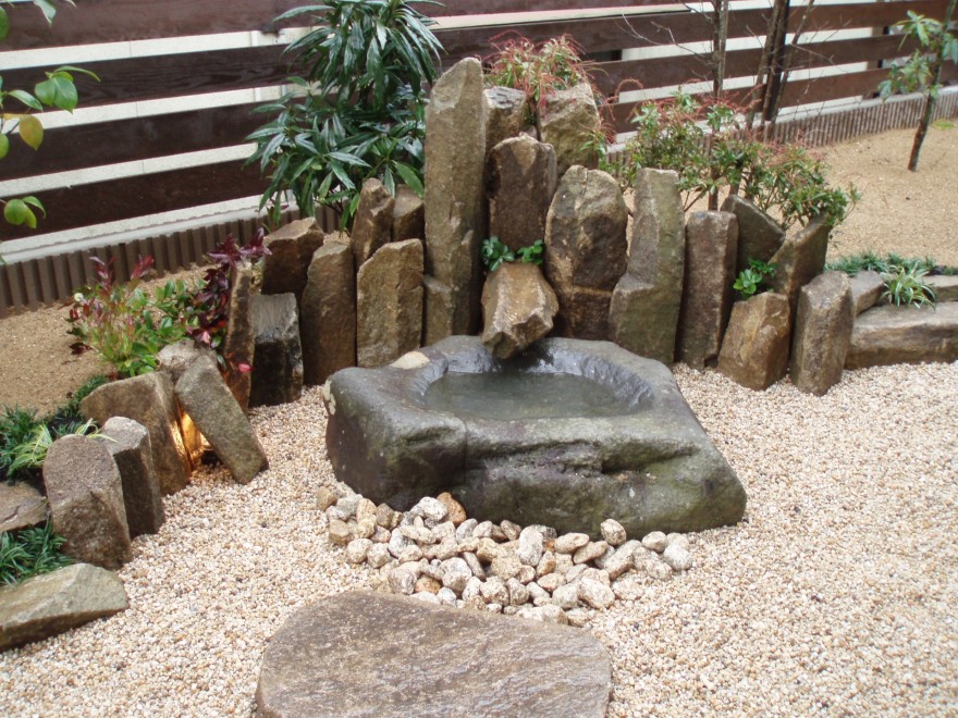 HOME外構・エクステリア・お庭の施工事例坪庭 > 坪庭に石トユから水が流れるつくばい 神崎郡市川町 I様邸