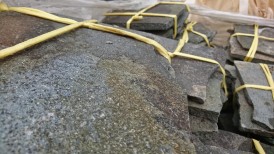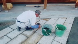 板石の目地セメント入れ