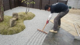 波のようなイメージで砂紋を描きます。