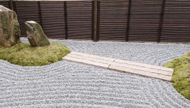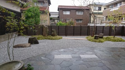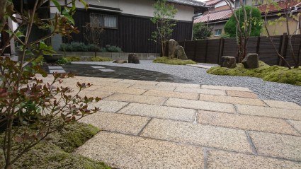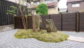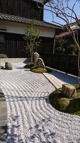 現代風の石庭と苔庭
