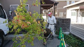 植木を南側の裏庭まで小運搬