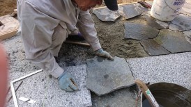 板石を汚さないように丁寧に施工します。
