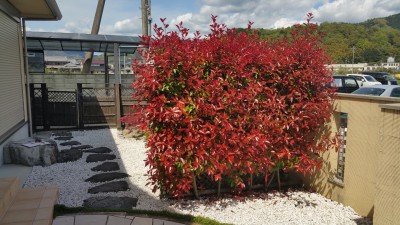 ・生茂っていたレッドロビンの生垣を撤去してスッキリとした和庭に