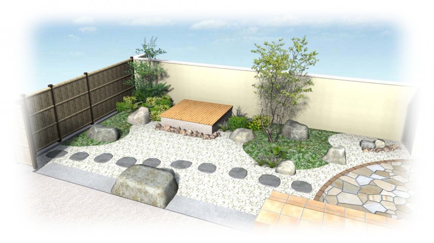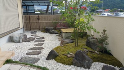 限られたスペースですが,和室から眺めた時に広く感じられるように