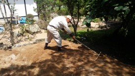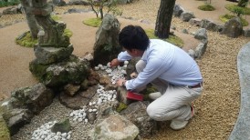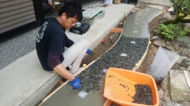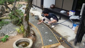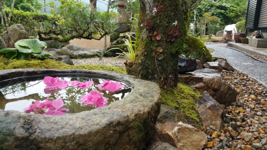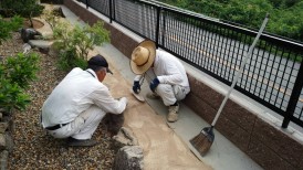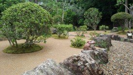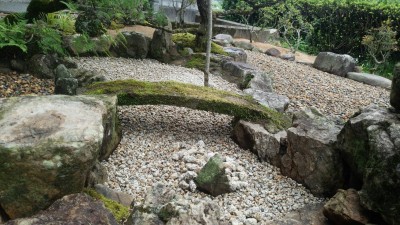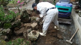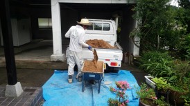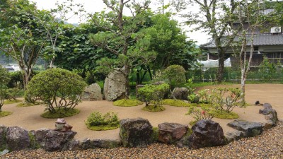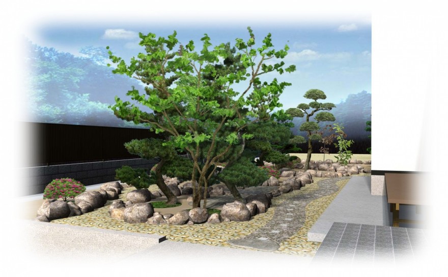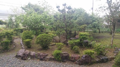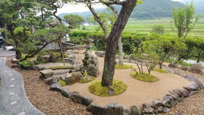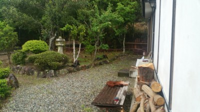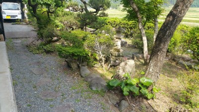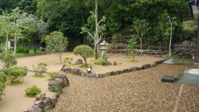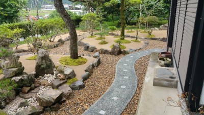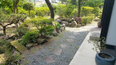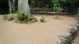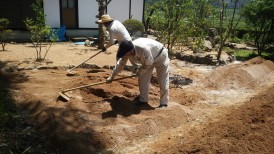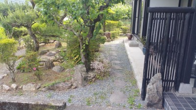 ・庭木のまわりは草が生えにくいように真砂土舗装