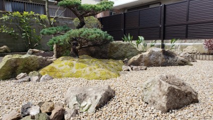 躍動感ある石組のお庭に劇的に変化しました。