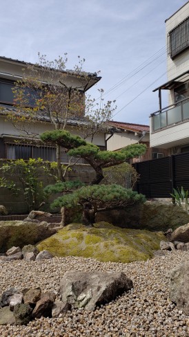 以前からお庭にあった庭木(松・梅)を移植しました。