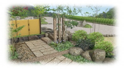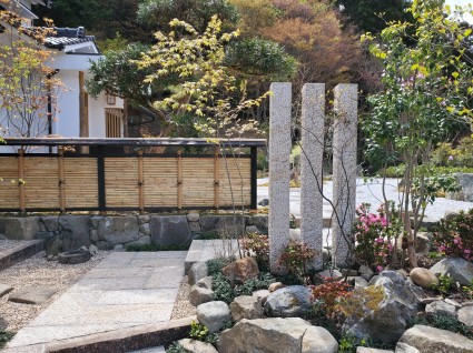 天然の竹垣とノベ石立てで