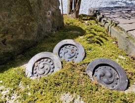 以前からあった庭の素材(板石、景石、灯篭等)を