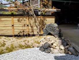 御簾垣とノベ石でさりげなく目隠しを…