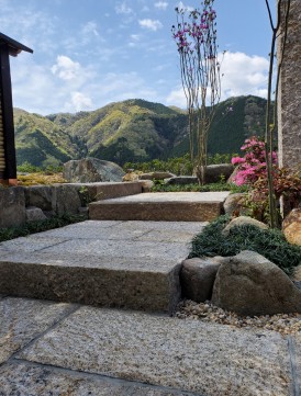 板石とノベ石の階段が馴染む心地よい空間です。