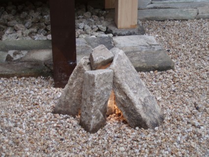 生野コバ積みで富士山をつくり2枚の岩で雲を演出。夜のライトアップで富士山に蔭ができくっきりと浮かびあがります。雲の蔭も絶妙です。